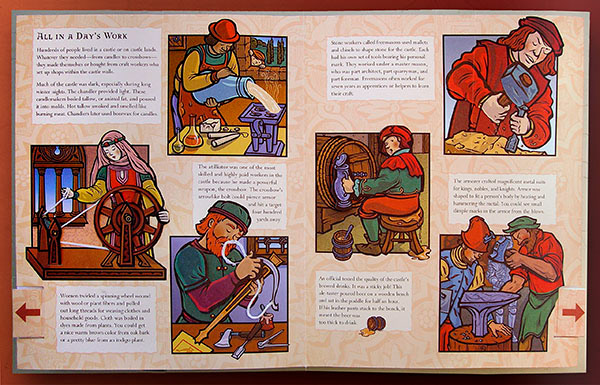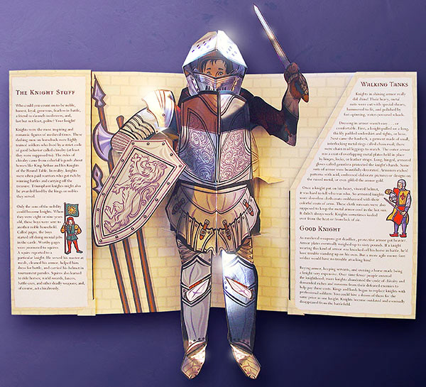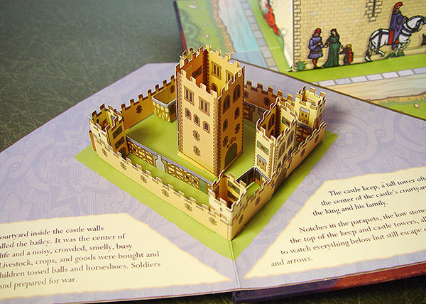 In 2006, Tracy was commissioned by popup specialists Robert Sabuda and Matthew Reinhart to illustrate the New York Times bestselling popup book, “Castle” with text and paper-engineering by Kyle Olmon. Over fifteen intricate pop-ups accompany the informative text, which guides readers through the different aspects of life and status in a medieval castle. Readers learn about the parts of a castle, food preparation, education, religious practices, knighting ceremonies, battles and royal feasts.