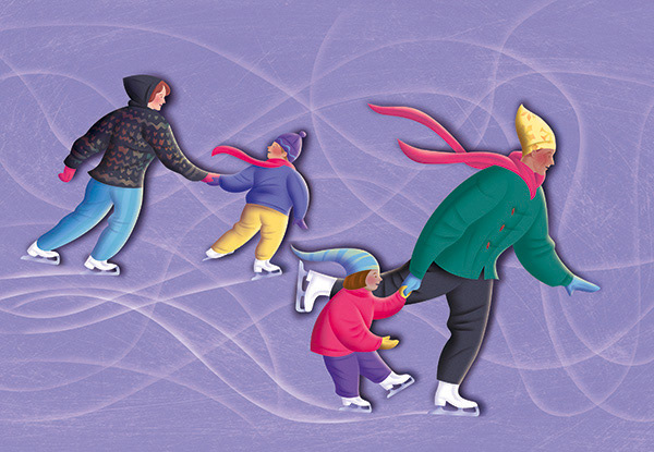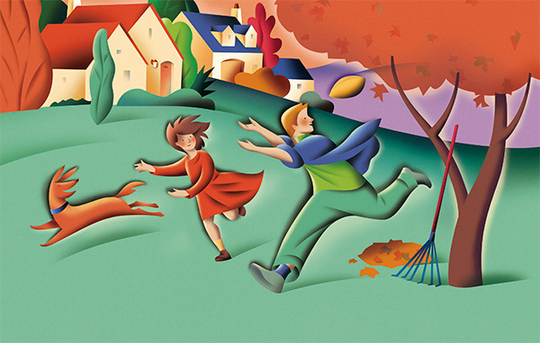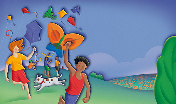 Family friendly illustrations depicting the four seasons, used by a northern California credit union. Art Direction by Mary McNulty of McNulty Creative.
